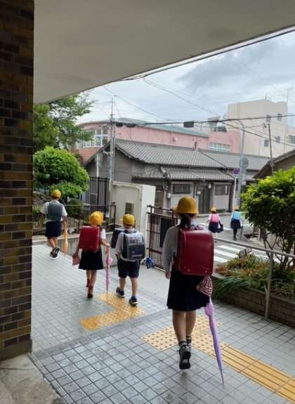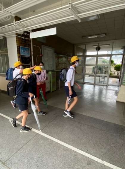 給食後下校する子どもたちです。