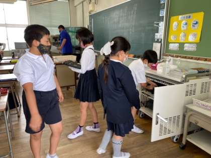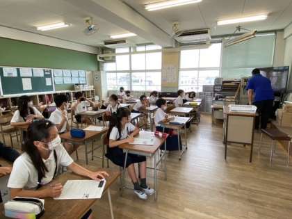 書けた児童はタブレット端末を取り出していました。