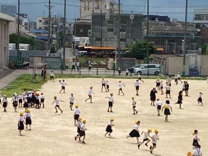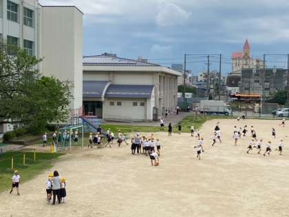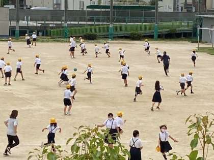 運動場には「待ってました」とばかりに、子どもたちが駆けだしてきました。元気いっぱい遊んでいます。