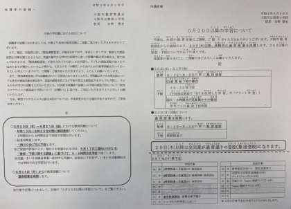 大阪市教育委員会よりの文書(本校の行事予定等も併記)を、本日子どもたちに配布しましたので、ご確認ください。よろしくお願いします。