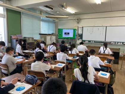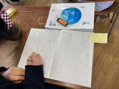一人一台端末のボイスレコーダーで班ごとの音読を録音し