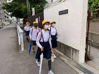 久々の集団登校です。今日より1限目からの授業となります。