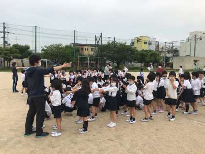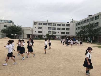 避難が完了しました。人数を確認した後、雨が降り出しそうなので、教室へ戻り、校長先生からの話を聞きました。