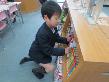 今日は雨天で、いつもより多くの子どもが図書館にいました。20分休憩にはじめて来た子もいました。