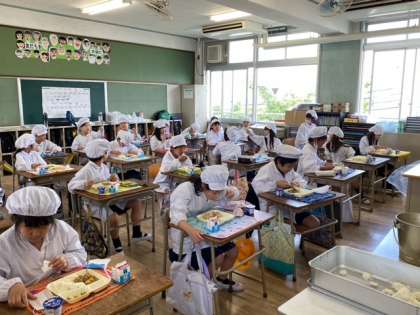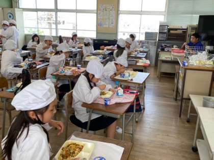4年生の教室では、子どもたちが美味しそうに食べていました。しっかり食べて、午後からの授業も頑張りましょう。