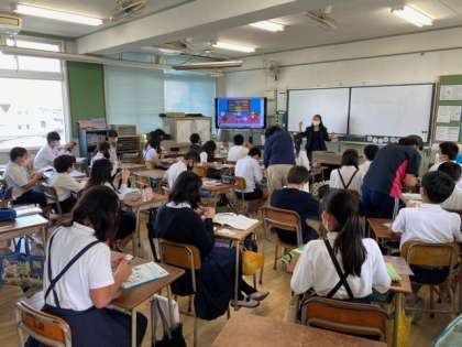 1組の英語科では、1月から12月までをC-NETの先生と一緒に英語で発音していました。