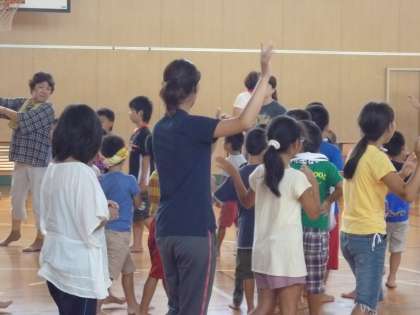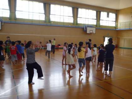 講師先生の振りを真似ながら、「河内音頭」を踊りました