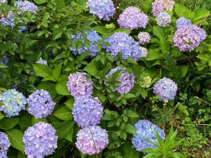 雨の中、紫陽花(あじさい)が ひときわ鮮やかに咲いていました。