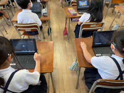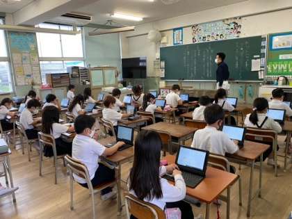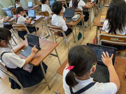 子どもたちが、今日家庭で行う「Teams」の接続テストにむけて、タブレット端末でサインインの仕方や会議への参加の確認をしていました。タイピストの練習もしました。