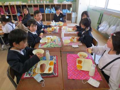 給食の様子を見てください。