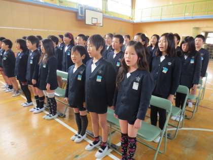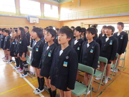 5年生が「大空をむかえる朝」を歌っています。
