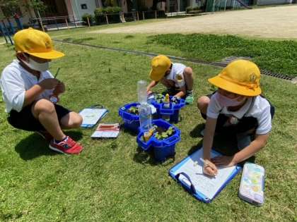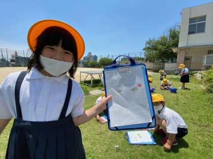 生活科の学習で「あさがお」を観察しています。「本葉が出たよ」と、スケッチした絵を見せてくれました。