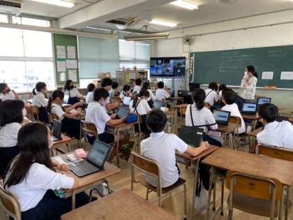 2組では、「Teams」を使って、様々な操作を試したり、SDGsの調べ学習をしていました。