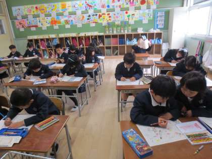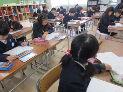 3組の様子です。各自がプリントの問題にチャレンジしています。
