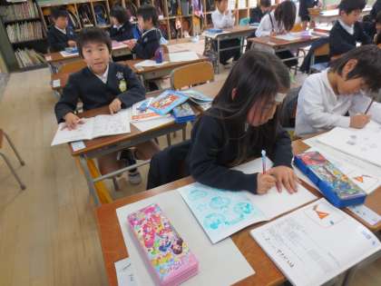 2組の様子です。各自のノートに漢字や絵などを自分で考えて勉強しています。
