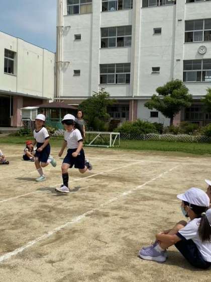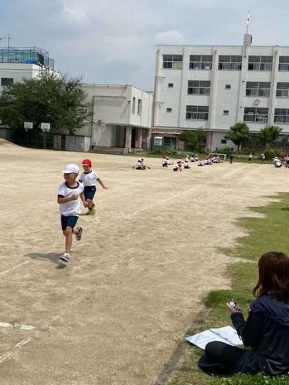 「がんばれー」「がんばれー」と子どもたちが応援していました。1年生、すごいですね。