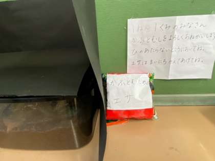 いきものがかりの子どもたちが、エサをやり、大切に育てています。クラスの人気者です。