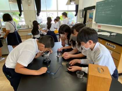 「めだかのたんじょう」のまとめをしました。また、顕微鏡を使って、土や砂を観察し、その中から「あるもの」を探しました。さあ、何でしょう。