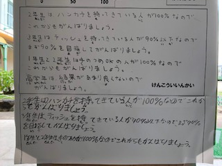 17日に健康チェック(ハンカチ・ティッシュ・爪)の2回目をしました。