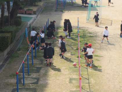走り回り汗がでてきたのでしょうか、服装も薄着になり遊んでいます。