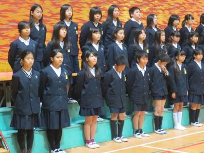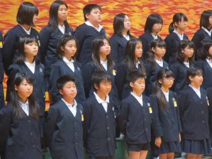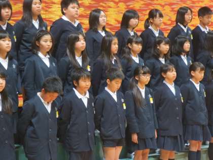 最後に卒業生より、在校生、家族、地域の方々、教職員へのメッセージと歌を伝えています。