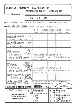 表面は、毎日の手洗いと歯みがきのチェック、裏面は、手洗