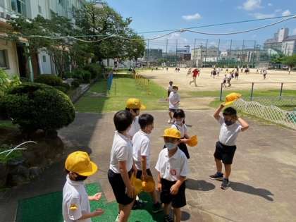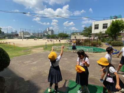 ふり注ぐ水のシャワーに、子どもたちは、驚いたり、喜んだり…………