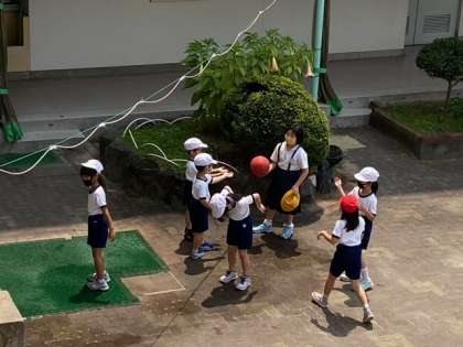 「お願い お願い カメさん カメさん …………♪♪」の音楽が聞こえると、子どもたちが、一斉に教室へ戻っていきます。