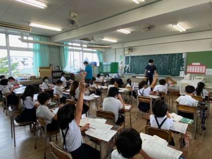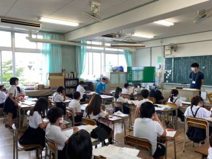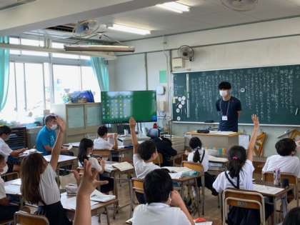 教育実習生が授業を行いました。国語科で「走れ」という物語文を読んでいます。子どもたちは、話をよく聞き手をあげて発表していました。