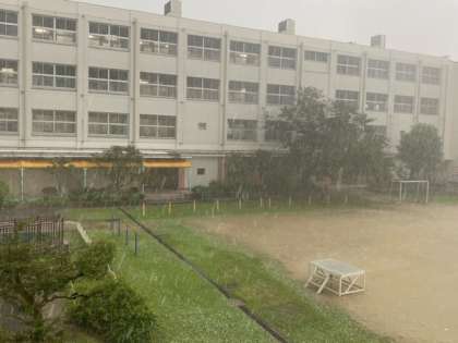 午後、降り出した雨が雹となり、雷も発生したため、窓を閉め、廊下に出ないように緊急放送をしました。教室では担任の先生が子どもたちを落ち着かせ安心させました。