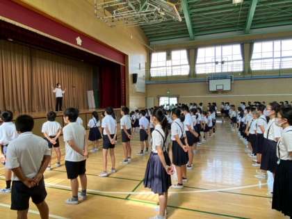 最後は、担当の先生の指揮にあわせて、校歌を小さな声で歌いました。