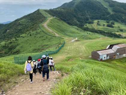 よい景色を見てお茶を飲み終えたら、下山です。今度はゲレンデの方から下りていくので、景色も変わって気持ちがよいですね!!