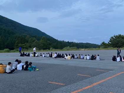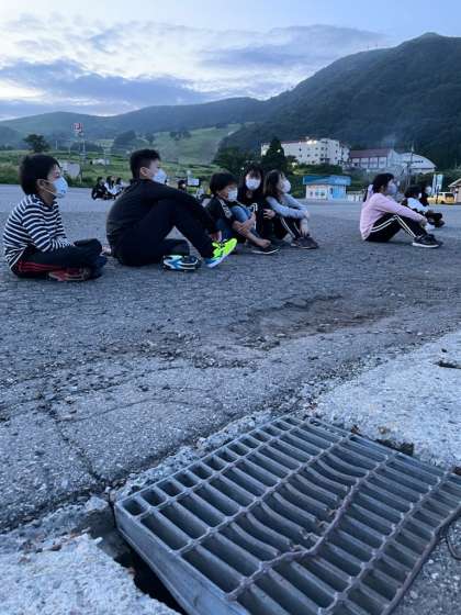 外がだんだんと暗くなってきました…。みんな、広場に集合!!