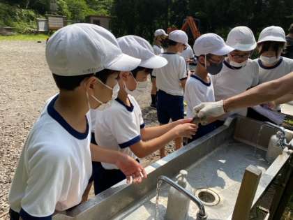 捕った魚は自分で洗って、宿舎の方にわたします。