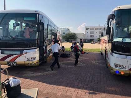 少し予定よりも遅くなりましたが、16:45に学校に到着しました。これから帰校式です。