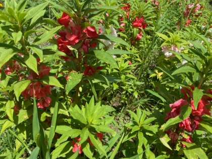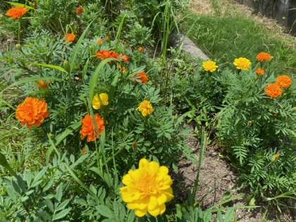 3年生の子どもたちが育ててきた「マリーゴールド」「ホウセンカ」がきれいに咲き誇っています。