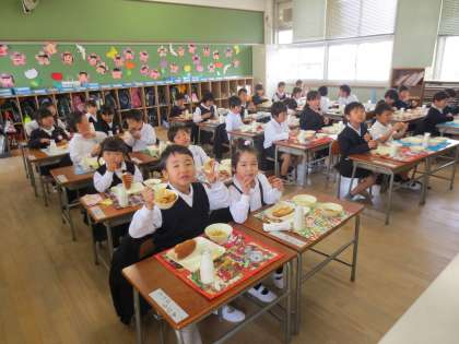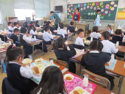 はじめての給食にしては、どの児童もきめられた時間にしっかりと食べていました。