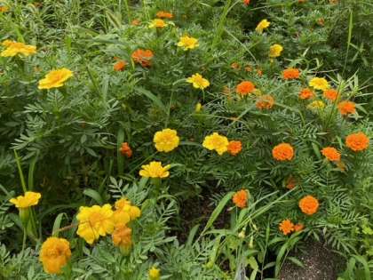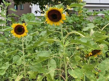 「ヒマワリ」や「マリーゴールド」の黄色や橙(だいだい)色が鮮やかです。