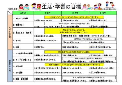 2学期からの学習をスムーズに始めるために、巽南小学校の「生活・学習の目標」を掲載いたします。