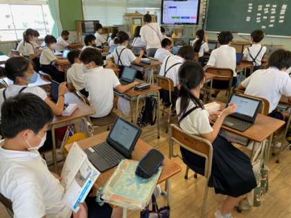 (6年生と4年生の教室では児童が自分のIDとパスワードでログインしていました)