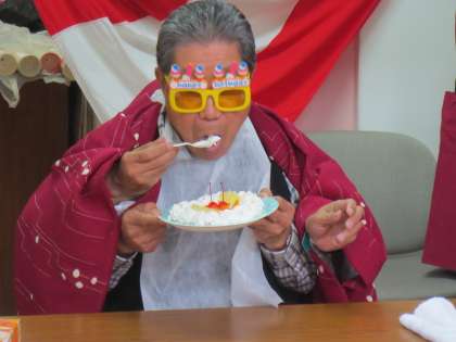 食事会のあと、各町会長さんによる「二人ばおり」が披露されました。敬老会の方々はとても楽しく過ごされていました。