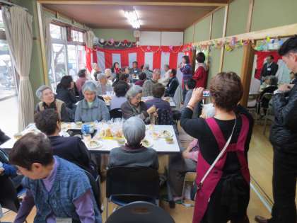 巽南社会福祉協議会の食事サービスの組織が、敬老の方々を食事にお招きして「巽南サロン」が行われていました。毎月、巽南小学校の多目的室で行われていますが、春一番はお花見会としての「巽南サロン」が巽南会館で行われました。
