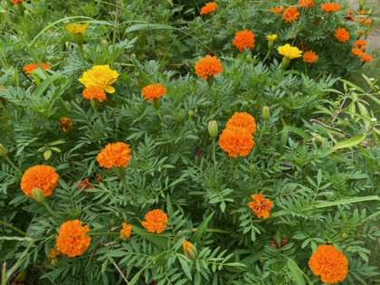 3年生の花壇では、「マリーゴールド」の花が とても きれいです。