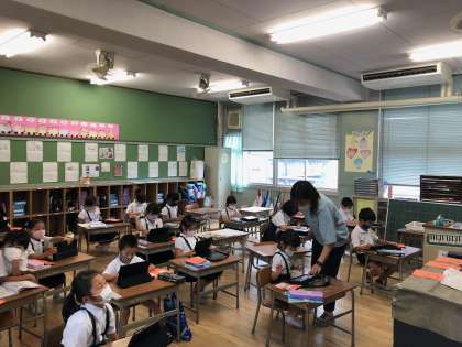 1年2組では、算数科の学習で1人1台端末を使って学習していました。学習したことをデジタルドリルでも復習しました。問題を解き進めていくと、トロフィーを集めることができます。みんな集中して取り組んでいてすばらしいです!!