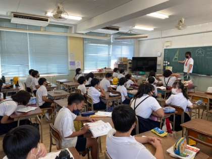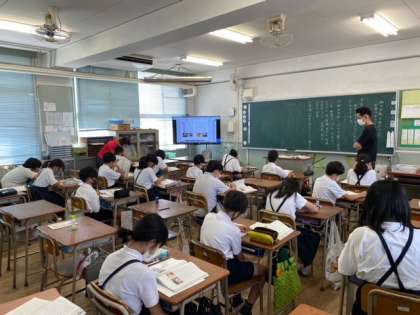 2組の国語科は、「和の文化を受けつぐ」の学習で、和菓子、着物、けん玉、こま……和の文化について考えました。