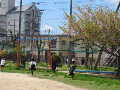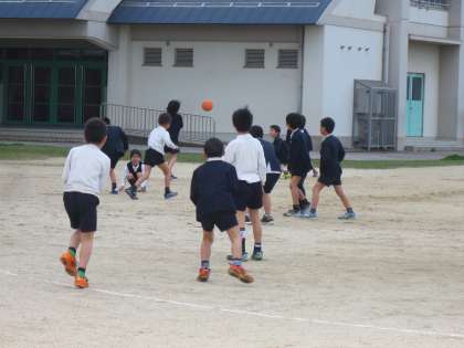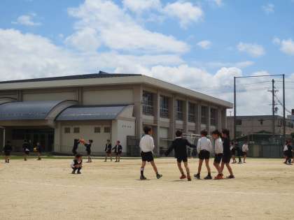 やっと雨があがり、子どもたちは「やった〜」と声をだし、元気に運動場で遊んでいます。