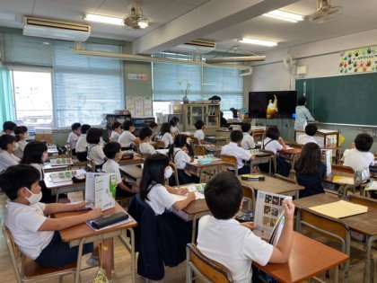 2組の理科では、カブトムシやバッタ・トンボなど昆虫の育ち方について考えました。カブトムシの成長をテレビで見ています。