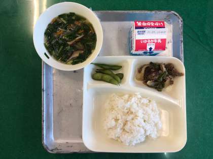プルコギ、トック、えだまめ、ご飯、牛乳