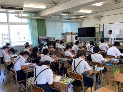 1組の理科では、「食物連鎖」について考えていました。新巽中学校の先生の授業です。