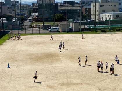 2組の体育科は、運動場で50m走のタイムを測り、コーナーを走る練習をしました。運動会にむけての練習が始まります。